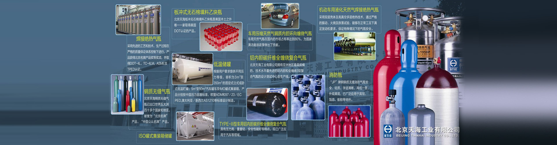 北京天海工業(yè)有限公司(以下簡(jiǎn)稱“天海工業(yè)”)是北京京城機(jī)電控股有限責(zé)任公司所屬北京京城機(jī)電股份有限公司(簡(jiǎn)稱京城股份,H股證券代碼00187,A股證券代碼600860)主要骨干企業(yè),是擁有七個(gè)專業(yè)氣體儲(chǔ)運(yùn)裝備生產(chǎn)基地(天海氫能、上海天海、天津天海、寬城天海、明暉天海、天海低溫、江蘇天海)及一個(gè)美國(guó)公司的集團(tuán)公司。天海工業(yè)及下屬子公司具有A2級(jí)高壓容器、B1級(jí)無(wú)縫氣瓶、B2級(jí)焊接氣瓶、B3級(jí)纖維纏繞氣瓶、B4級(jí)低溫絕熱氣瓶、B5級(jí)溶解乙炔氣瓶、C2級(jí)罐式集裝箱、D級(jí)中低壓容器的設(shè)計(jì)和生產(chǎn)資質(zhì)??缮a(chǎn)800余個(gè)品種規(guī)格的鋼質(zhì)無(wú)縫氣瓶、玻璃纖維環(huán)向纏繞氣瓶、碳纖維全纏繞復(fù)合氣瓶(含三型瓶、四型瓶、呼吸器)、無(wú)石棉填料乙炔瓶、焊接氣瓶、焊接絕熱氣瓶(含車用)、固定式壓力容器、低溫罐式集裝箱、船用罐、CNG/LNG/H2車載供氣系統(tǒng)及加氣站等系列產(chǎn)品,廣泛應(yīng)用于汽車、化工、消防、醫(yī)療、石油、能源、城建、食品、冶金、機(jī)械、電子等行業(yè)。