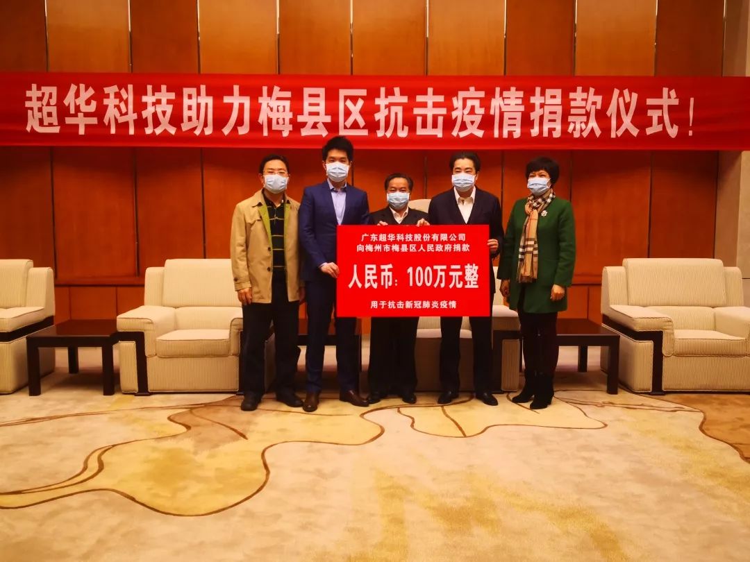 當(dāng)前,新型冠狀病毒感染肺炎疫情防控斗爭(zhēng)已進(jìn)入攻堅(jiān)期,為助力打贏疫情防控戰(zhàn),超華科技除在深圳市梅縣商會(huì)捐資20萬元購買疫情防控物資外,追加捐資100萬元助力梅縣區(qū)抗擊疫情, “疫”不容辭履行社會(huì)責(zé)任。