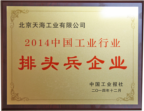 12月13日,由中國工業(yè)報主辦的2014中國工業(yè)行業(yè)排頭兵企業(yè)發(fā)展論壇在京召開。會上,北京天海工業(yè)有限公司榮獲“2014年中國工業(yè)行業(yè)排頭兵企業(yè)”榮譽稱號。
