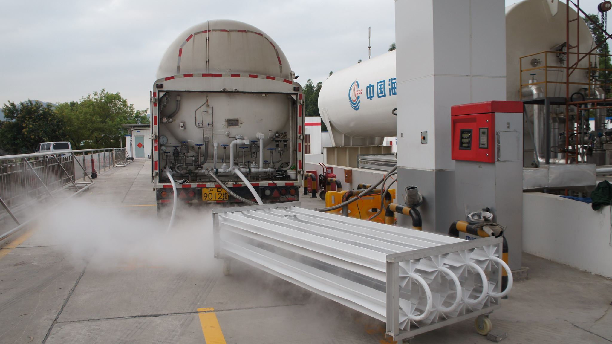 L-CNG加氣站是LNG與CNG兩種加氣方式的有機(jī)組合,是一種正在興起、具有良好推廣應(yīng)用前景的加氣站類型。它以液相、低溫的天然氣進(jìn)站,通過液相泵加壓、氣化后實(shí)現(xiàn)對(duì)汽車加氣,無需高耗電量和噪音大的氣體壓縮機(jī),站內(nèi)用能較少,因而加壓效率高、運(yùn)行費(fèi)用低。